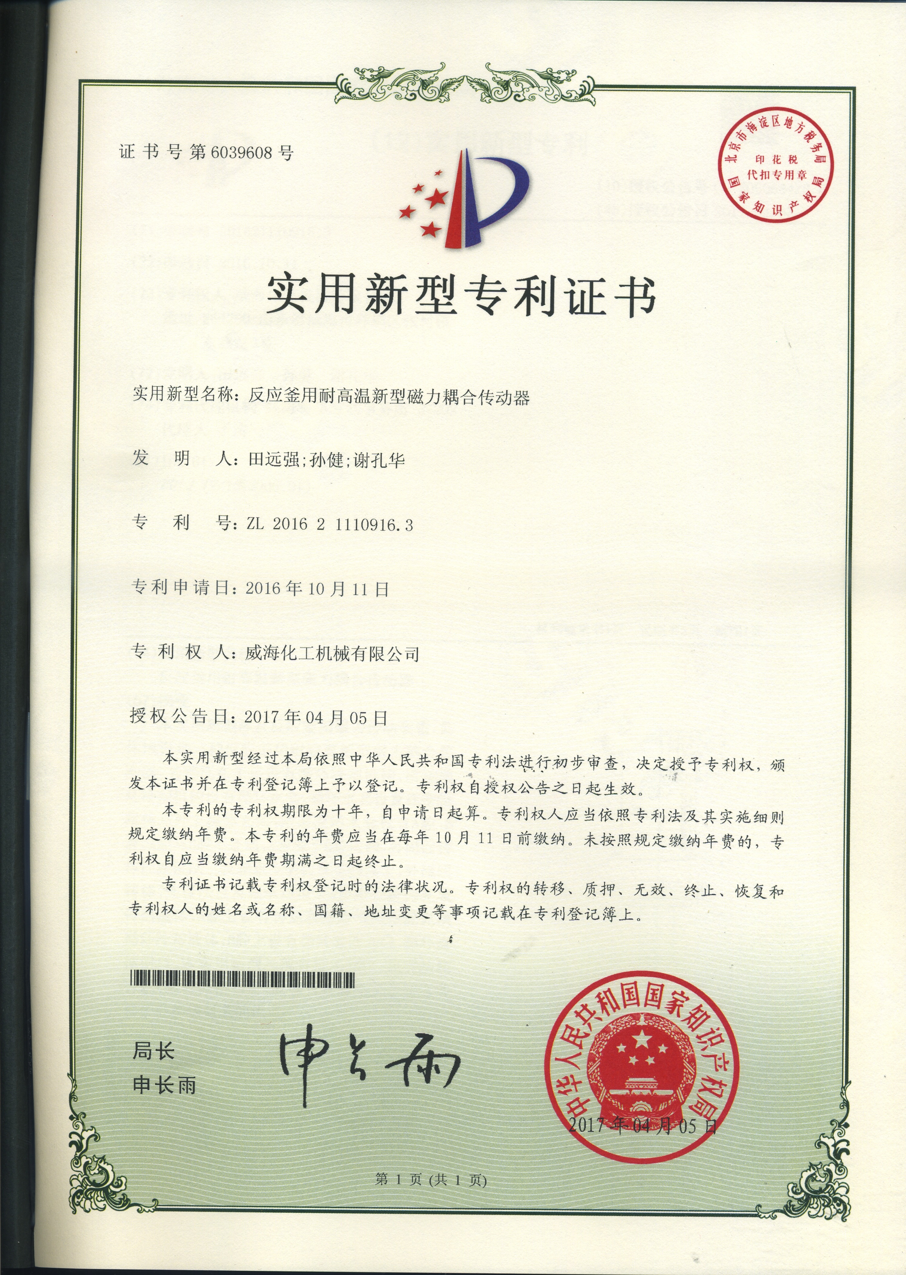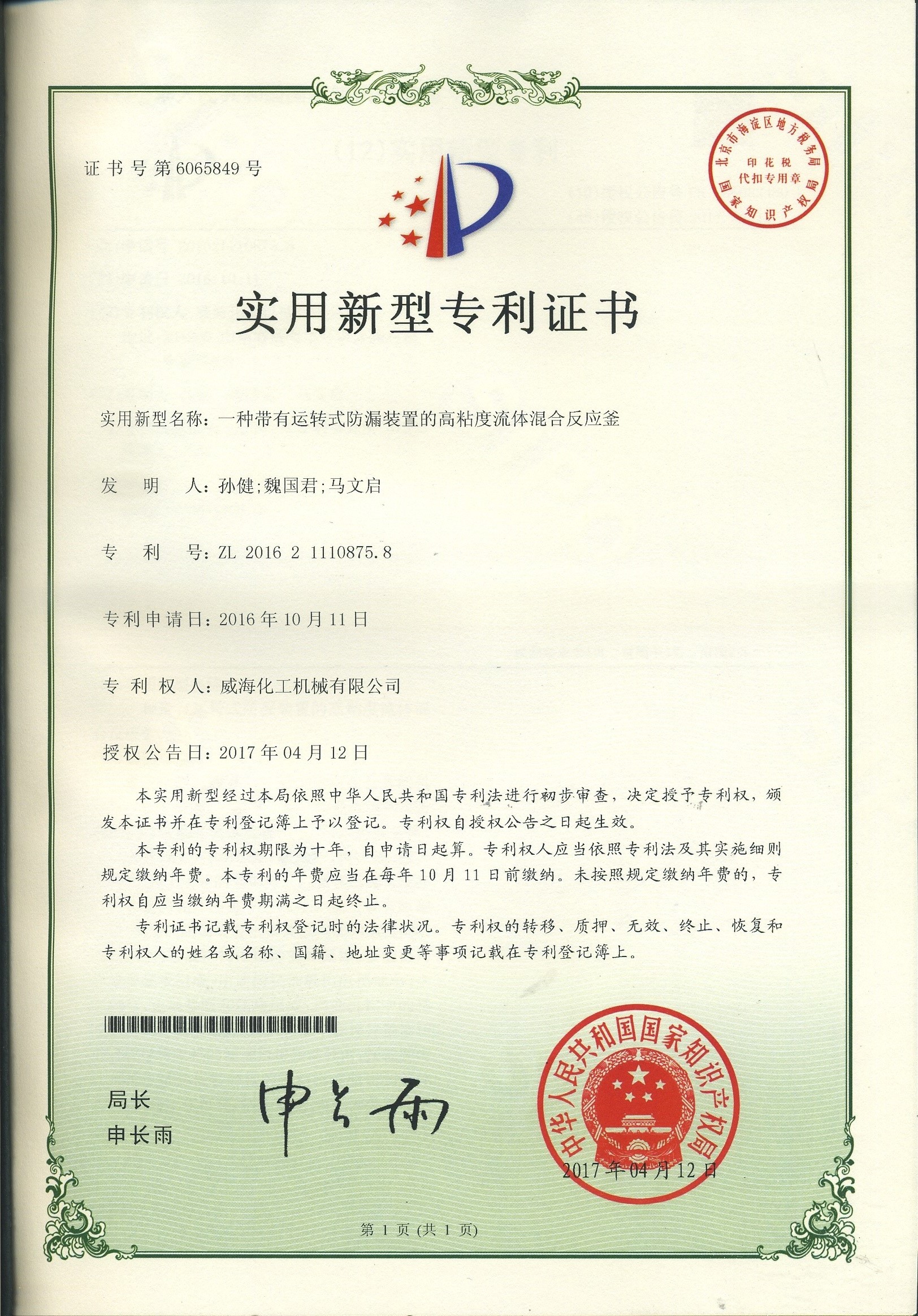 公司建有磁力驅(qū)動(dòng)測(cè)試試驗(yàn)室、攪拌模擬試驗(yàn)室、反應(yīng)釜流體混合攪拌重點(diǎn)實(shí)驗(yàn)室等,科研力量雄厚。截至2024年,公司共承擔(dān)近280項(xiàng)自主/合作開發(fā)任務(wù),先后承擔(dān)省級(jí)新產(chǎn)品開發(fā)任務(wù)25項(xiàng),其中23項(xiàng)產(chǎn)品已達(dá)到國(guó)內(nèi)水平。獲得各類省、市級(jí)技術(shù)創(chuàng)新獎(jiǎng)30余項(xiàng);參與起草、修訂標(biāo)準(zhǔn)共8項(xiàng),GB/T30098-2013實(shí)驗(yàn)室用磁力驅(qū)動(dòng)反應(yīng)釜標(biāo)準(zhǔn)、HG/T3648-2011磁力驅(qū)動(dòng)反應(yīng)釜標(biāo)準(zhǔn)、GB/T29254-2012實(shí)驗(yàn)室反應(yīng)釜用控制器標(biāo)準(zhǔn)、NB/T47002.1~47002.4-2019壓力容器用復(fù)合板;已獲得授權(quán)專利95項(xiàng),其中發(fā)明專利19項(xiàng),實(shí)用新型專利69項(xiàng),外觀專利7項(xiàng);擁有專有技術(shù)和核心技術(shù)40余項(xiàng)。